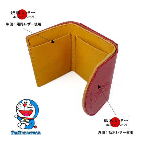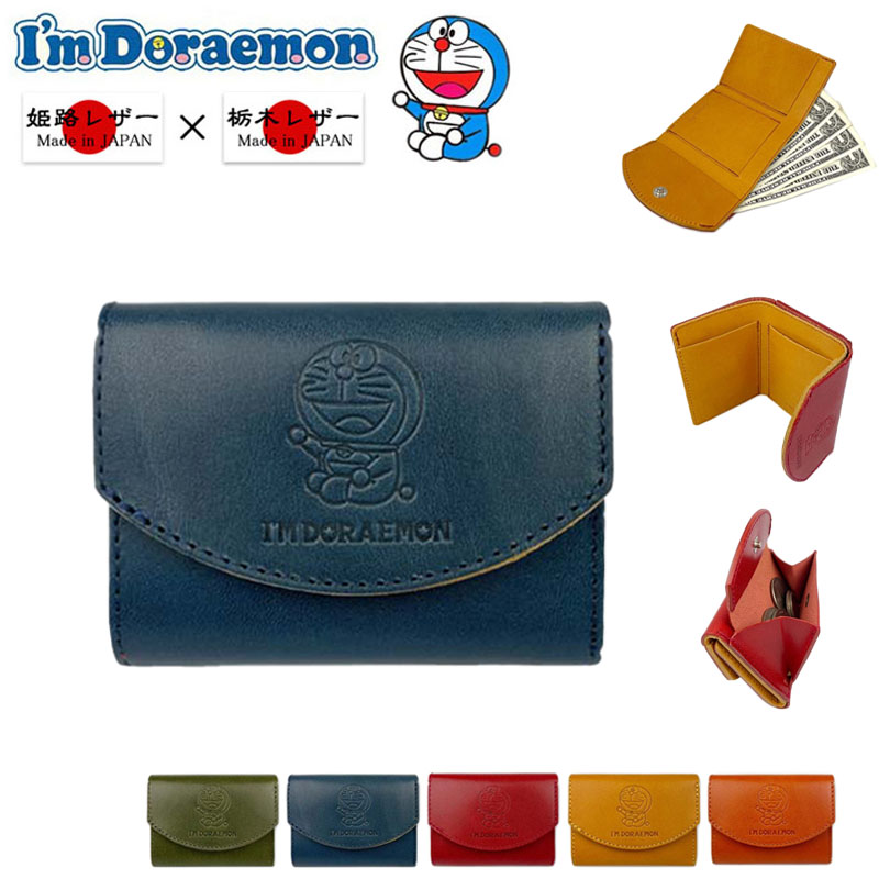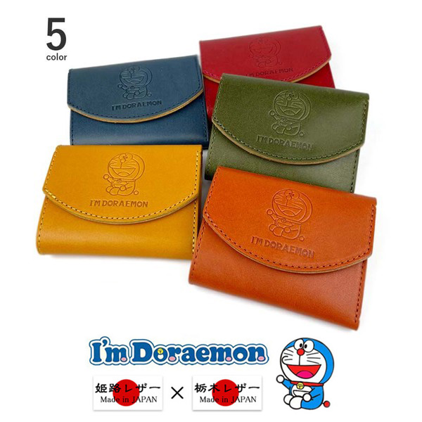 サイフ 3つ折り 財布 小銭入れ 牛革 日本製 栃木レザー×姫路レザー ブランド ドラえもん dor-51 本革 ミニウォレット リアルレザー [dor-51]